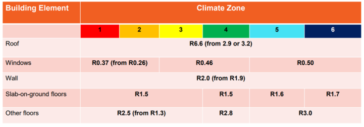Ceiling construction R-values have increased significantly from R2.9 or R3.2 to R6.6 across all six new climate zones. Specifiers have choices: